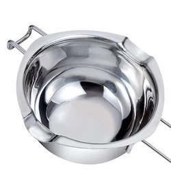 Для этого существуют специальные металлические миски, которые можно надежно прикрепить к кастрюле с водой с помощью изогнутой ручки.